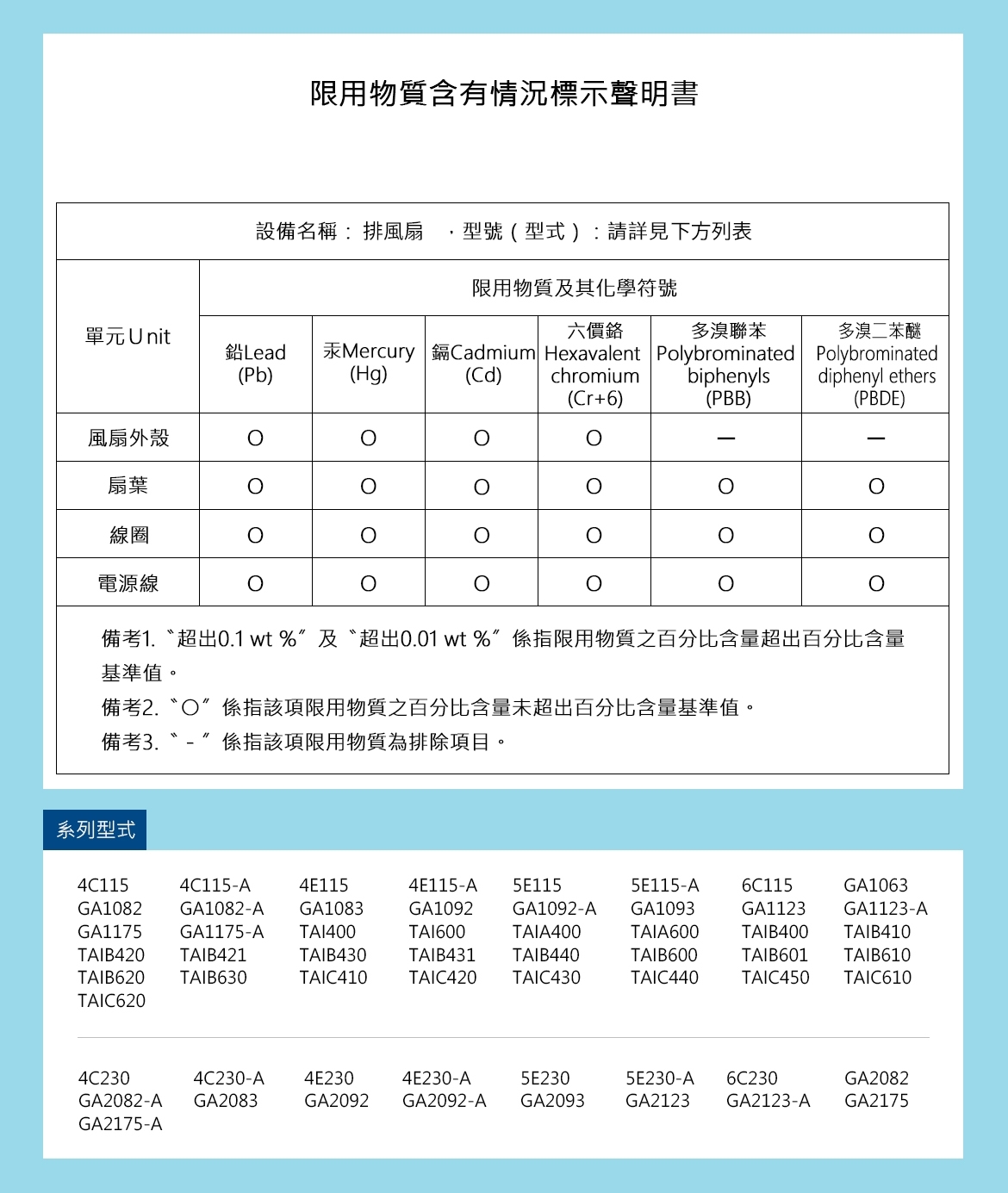 限用物質標示專區 LIMIT MATERIAL